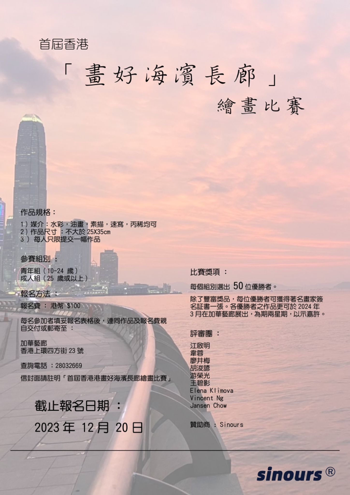 信封面請註明「首屆香港港畫好海濱長廊繪畫比賽」